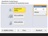Ha az <Eredeti mérete> részben megjelenő méret eltér az eredeti dokumentum méretétől, akkor nyomja meg a <Változtat> gombot a méret módosításához. Az Eredeti keretének törlése üzemmód csak az érintős vezérlőpanelen megjelenő dokumentumméretek esetén használható.