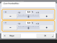 Ha a másolt kép mérete kis mértékben eltér az eredeti dokumentumétól, a képméret finombeállításához kövesse az alábbi eljárást. A vízszintes és függőleges szélesség nagyítását külön tudja megadni.