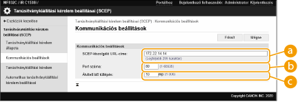 Az SCEP-kiszolgálóval folytatott kommunikáció beállításait adhatja meg.