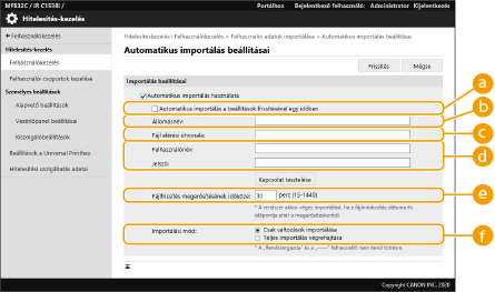 Jelölje be a [Automatikus importálás használata] lehetőséghez tartozó jelölőnégyzetet, és adja meg a szükséges beállításokat.