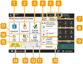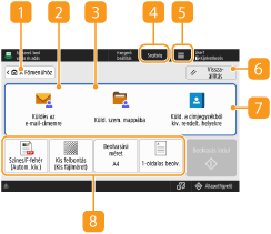 Ez a terület a beállítások állapotát jeleníti meg, például a színmódot és a beolvasási méretet. Az eredeti helyes beolvasása érdekében feltétlenül ellenőrizze a beállításokat. A beállítások módosításához nyomja meg a kívánt gombot. Küldéskor megadható részletes beállítások konfigurálása