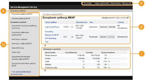 [MEAP Application Management]: Zarządzanie zainstalowanymi aplikacjami MEAP jest przeprowadzane główne z poziomu tej strony.