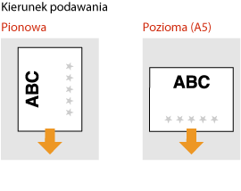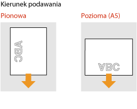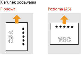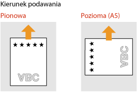 Sposób ładowania różni się zależnie od tego, czy papier z nadrukowanym logo ma orientację pionową czy poziomą.