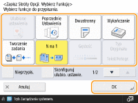 Zmiana ustawień domyślnych na ekranie podstawowych funkcjiPo zmianie ustawień poszczególnych funkcji możesz zarejestrować aktualne ustawienia jako domyślne na ekranie podstawowych funkcji, naciskając