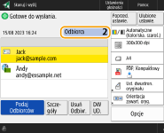 Sprawdzanie całkowitej liczby określonych odbiorcówCałkowita liczba określonych odbiorców jest wyświetlana w prawym górnym rogu ekranu. Umożliwia to potwierdzenie przed wysłaniem, czy liczba odbiorców jest prawidłowa.