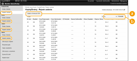 Możesz wyświetlić rejestr dla dokumentów, które zostały skopiowane, wydrukowane, wysłane, odebrane lub zapisane.