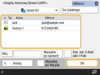 powoduje wyświetlenie odpowiednio odbiorców e-mail, serwera plików i odbiorców grupowych.
