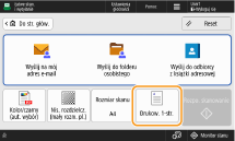 Ekran Łatwe skan. i wysyłanie zawiera przyciski umożliwiające łatwą konfigurację podstawowych ustawień, takich jak miejsce docelowe i tryb kolorów.