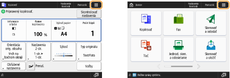 zobrazeného na obrazovke <Domov> a obrazovke základných funkcií môžete prispôsobiť obrazovku, napríklad zmeniť usporiadanie tlačidiel alebo vytvoriť klávesovú skratku. Prispôsobenie displeja dotykového panela