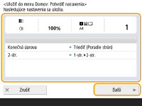 Potvrďte nastavenia a stlačte tlačidlo <Ďalší>.