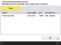 Zostávajúce množstvo spotrebných materiálov môžete skontrolovať z rozhrania vzdialeného UR. Kontrola stavu zariadenia