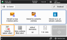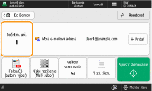 Obrazovka Jednod. sken. a odosielanie obsahuje tlačidlá na jednoduché nastavenie základných parametrov, ako sú miesto určenia a farebný režim.