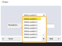 Tiek parādīti adresāti, kas ir reģistrēti 6. darbībā izvēlētajā adrešu sarakstā. Šajā sarakstā izvēlieties adresātus, kurus vēlaties reģistrēt grupā.