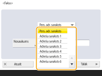 <Adrešu grāmata> faksa pamatdarbību ekrānā