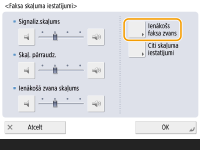 Skaņas signāls tiek atskaņots, kad iekārta pārslēdzas miega režīmā vai kad iekārta tiek izslēgta, ja iestatījumu <Ātrās startēšanas iestatījumi galv. strāvai> iestatāt uz <Iesl.>. (Atkarībā no situācijas iekārta netiek palaista ātri un skaņas signāls netiek atskaņots.)