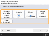 un pēc tam nospiežot <Mainīt noklusējuma iestatījumus>. Ja pirms šā iestatījuma veikšanas iekārtā piesakāties, izmantojot personu autentifikācijas pārvaldību (Pieteikšanās iekārtā), tas tiek reģistrēts kā jūsu personalizētais noklusējuma iestatījums (Personalizējamu vienumu saraksts). |