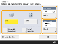 Nospiežot <Mainīt> iestatījumā <Oriģ. formāts>, varat izvēlēties oriģināla formātu, un, nospiežot <Mainīt> iestatījumā <Papīra formāts>, varat izvēlēties papīra formātu.