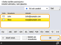 E-pasta paziņojumu adresāts ir jāizvēlas adrešu grāmatā. Reģistrējiet vēlamo adresātu jau iepriekš. Adresātu reģistrēšana adrešu grāmatā