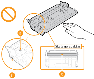 Vienmēr turiet tonera kasetni aiz tās roktura.