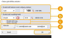 Sakaru pārvaldības pārskata iestatījumus nevar konfigurēt, ja opcija <Rādīt darbu žurnālu> iestatījumos <Pārvaldības iestatījumi> ir iestatīta uz <Izsl.>. Turklāt, ja jūs maināt opciju <Rādīt darbu žurnālu> iestatījumos <Pārvaldības iestatījumi> no <Izsl.> uz <Iesl.>, opcijas <Drukāt/sūtīt katram norād. sūtījumu skaitam> un <Drukāt/sūtīt norādītajā laikā> sakaru pārvaldības pārskatā automātiski tiek mainītas uz <Izsl.> <Rādīt darbu žurnālu>