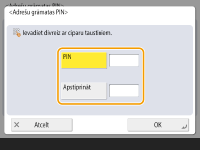 (Dzēst), lai izdzēstu PIN kodu (atstājiet tekstlodziņu tukšu), un nospiediet <OK>.