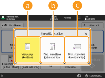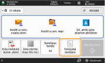 Ekrānā Vienkāršā sken. un sūtīšana ir pieejamas pogas pamata iestatījumu, piemēram, mērķa un krāsu režīma, vienkāršai konfigurēšanai.