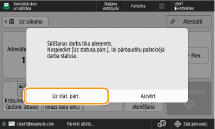 Ja darba sūtīšanas laikā vadības panelī nospiežat  (Pārtraukt), tiek parādīts paziņojums <Vai atcelt norādīto sūtīšanas darbu?>. Lai atceltu sūtīšanu, nospiediet <Jā>.