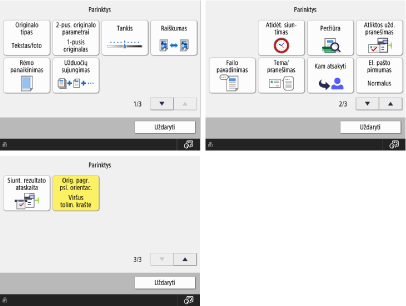 Nuskaitymo ir siuntimo pagrindinių funkcijų ekranas