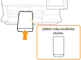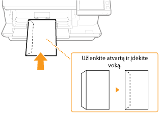 Vokus dėkite į popieriaus stalčių ar universalųjį dėklą. Kai spausdinate ant vokų, tam, kad popierius neįstrigtų ir nesiglamžytų, prieš dėdami vokus išlyginkite visus nelygumus. Be to, atkreipkite dėmesį į vokų padėtį ir į viršų nukreiptą pusę.