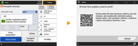 Paspaudus <Pagalba> pagrindiniame fakso arba nuskaitymo ekrane, rodomas QR kodas, leidžiantis pasiekti Vartotojo instrukcija fakso arba nuskaitymo puslapius.
