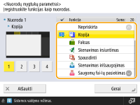Pasirinkite funkciją, kuriai norite sukurti spartųjį klavišą.