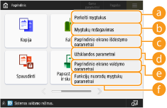 <Funkcijos rodymo apribojimas>: Pasirinkite funkcijas ar MEAP programas, kurios bus paslėptos ekrane <Pagrindinis>.