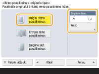 Jei <Originalo form.> rodomas formatas skiriasi nuo jūsų pasirinkto originalo formato, paspauskite <Keisti>, kad pasirinktumėte formatą. Galima nuskaityti tik originalo formatus, rodomus jutikliniame ekrane.