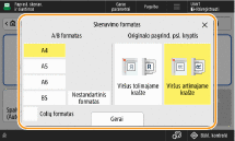 Paspauskite mygtuką, kad pamatytumėte dvipusių originalų parametrus.