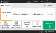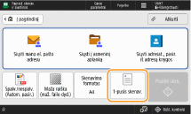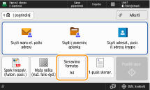 Ekrane Paprast. skenav. ir siuntimas yra mygtukai, kuriais galima lengvai konfigūruoti pagrindinius parametrus, pvz., paskirties vietą ir spalvų režimą.