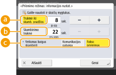Nurodykite laiką, po kurio suaktyvinamas gaunamos faksogramos garsinis signalas, kai gaunamas skambutis.