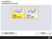 <Sırala (Sayfa Sırası)> veya <Grupla (Aynı Sayfalar)> seçeneğine basın.