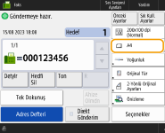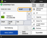 Faks Temel Özellikleri ekranında hedefi belirleyin. Faks Temel Özellikler Ekranı