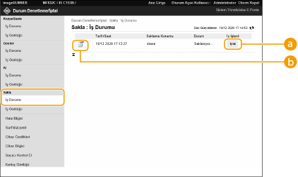 Uzak Kullanıcı Arabirimi'ni başlatın [Sakla] altında  [Durum Denetleme/İptal]  [İş Durumu]