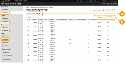 Kıpyalanan, yazdırılan, gönderilen, alınan veya depolanan belgeler için bir günlük görüntüleyebilirsiniz.