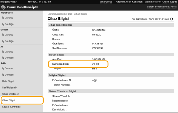 [Sürüm Bilgisi] alanında [Kumanda Birimi] içindeki sürümü kontrol edin.