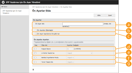 IPP Yazdırma Ön Ayarlarını Kaydetme