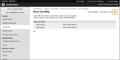 Portal sayfasında [Ayarlar/Kayıt] öğesine tıklayın. Uzak Kullanıcı Arabirimi Ekranı