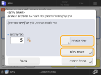 אם תבחר <כל הדפים>, המונה של המכשיר יספור את קבוצת הדוגמה כעותק.