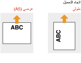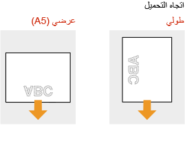 يتم ضبط الطريقة المناسبة لتحميل الورق المطبوع مسبقًا عند ضبط "الورق المطبوع مسبقًا" <تشغيل> في <إعدادات إدارة نوع الورق> أو عند ضبط <تبديل طريقة تغذية الورق> على <أولوية وجه الطباعة>