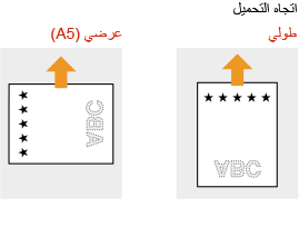 يصف هذا القسم كيفية تحميل الورق المطبوع مسبقًا مع توضيح التوجيه الصحيح. للحصول على وصف للإجراء العام لتحميل الورق في درج الورق أو الدرج متعدد الأغراض، راجع أسلوب تحميل الورق الأساسي.