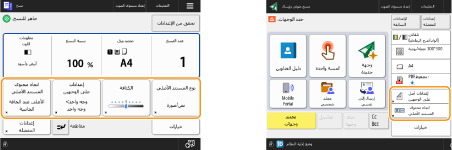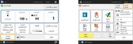 لاستخدام الشاشة <الرئيسية> وشاشة الميزات الأساسية لكل وظيفة بمزيد من السهولة، يمكنك تخصيص الشاشة عن طريق إعادة ترتيب الأزرار أو إنشاء أزرار اختصار. بالإضافة إلى ذلك، يمكنك العمل بمزيد من الكفاءة عن طريق تسجيل الإعدادات المحددة بالفعل للوظائف المستخدمة بشكل متكرر في <شخصي>/<مشترك>، أو الإعدادات الشخصية لتخصيص بيئة التشغيل حسب تفضيلاتك.
