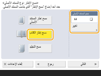 إذا اختلف الحجم المعروض في <حجم المستند الأصلي> عن حجم المستند الأصلي، فاضغط على <تغيير> لتحديد الحجم. يُمكنك فقط تعيين وضع مسح إطار المستند الأصلي لأحجام المستندات الأصلية المعروضة على شاشة لوحة اللمس.
