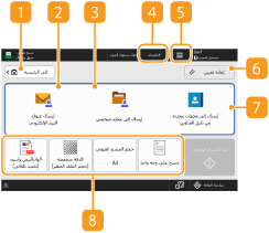 تعرض هذه المنطقة حالة الإعدادات مثل وضع الألوان وحجم المسح الضوئي. لمسح المستند الأصلي ضوئيًا بطريقة صحيحة، تأكد من تأكيد الإعدادات. لتغيير الإعدادات، اضغط على الزر المطلوب. تكوين الإعدادات التفصيلية عند الإرسال