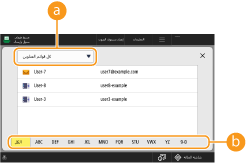 عند تسجيل الدخول إلى الجهاز باستخدام إدارة المصادقة الشخصية، يؤدي تحديد <قائمة عناوين شخصية> إلى عرض دليل العناوين الشخصي.